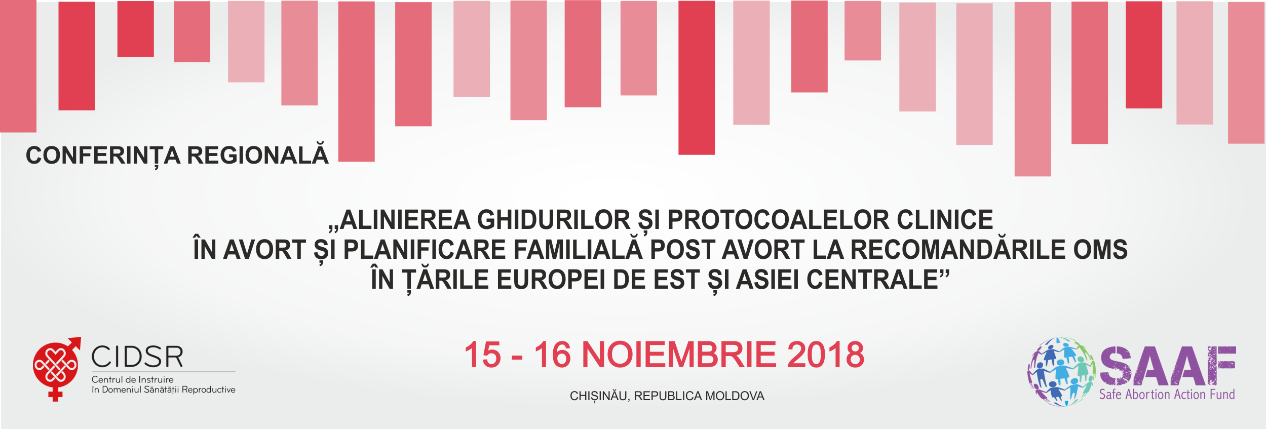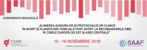 Asociația Obștească „Centrul de Instruire în Domeniul Sănătății Reproductive” (CIDSR) organizează în data de 15 -16 noiembrie 2018, la Chișinău, o conferință pe tema avortului sigur și planificarea familiei după o întrerupere de sarcină. Participanții conferinței vor fi echipe din 12 țări, formate din persoane instruite în elaborarea ghidurilor și protocoalelor, precum și cu experiență în gestionarea avortului sigur și planificarea familială.