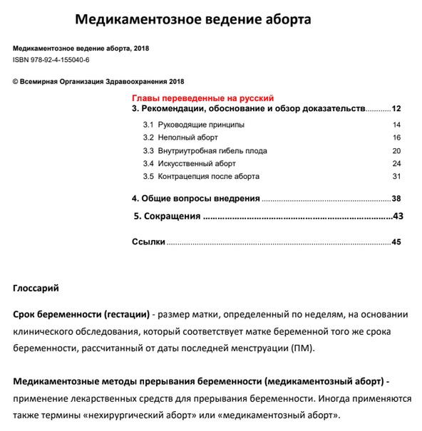 În cadrul proiectului implementat de CIDSR – „Alinierea ghidurilor și protocoalelor clinice în avort și planificare familială post-avort la recomandările OMS și UNFPA în țările Europei de Est și Asiei Centrale” susținut de SAAF a fost tradus în limba rusă cele mai importante capitole din recomandările OMS ce conțin informații despre: